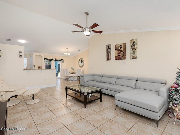 This move-in-ready 3 bedrooms and 2 bath home is great for first time home buyers, snowbirds, or for empty nesters. Freshly painted interior and exterior. Beautiful ceramic tile throughout. Updated kitchen with quality wood cabinets, granite countertops, and new stainless steel appliances. This home has a great layout with split floor plan, cathedral ceilings and elegant crown molding. Two car garage with newly painted epoxy flooring. Extra large covered porch perfect for enjoying Florida weather. Upgraded bathrooms with stylish wood vanity's with granite. Large fenced yard with wood playground and fruit bearing trees. Newly installed gutters and water treatment system. Conveniently located near shops, dining, and minutes from the beach 2022-01-26