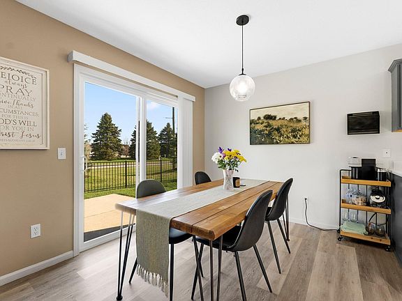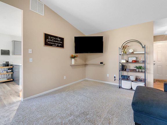 This beautifully taken care of Delagrange built ranch is ready for its new owners. Beautifully landscaped with fresh mulch, and located on a cul-de-sac. Entering the foyer you will feel the openness the vaulted ceiling in the great room gives, complete with a ceiling fan. Look out the back windows to view the backyard complete with black aluminum fencing and mature evergreens for extra privacy. Great room is next to kitchen area with sliding glass door to access the back patio. Kitchen has nice bar area for stools or extra preparation area. Laundry area can be closed off from kitchen with pocket door, and is conveniently located as you walk in from the garage. Don't forget to check out the nice sized pantry closet in laundry/kitchen area. Opposite end of the home has 3 nice sized bedrooms with walk in closet and private bath in main bedroom. Kitchen has recently painted cabinets and hardware, vinyl plank flooring, & lighting. Playground 2 blocks away, PufferBelly trail close by, NWAC schools. Come gaze the stars at night.