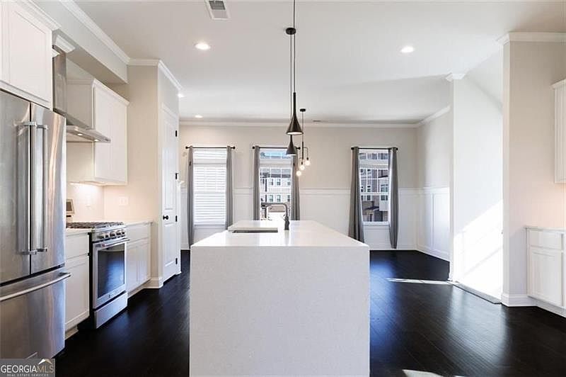 Welcome to your beautifully upgraded townhome, ideally located near entertainment, shopping, dining, Emory University, the CDC, Dekalb Medical, Marta, and Downtown-plus a new Publix just around the corner! Step inside to find stunning hardwood floors throughout and a chef's kitchen designed to impress, complete with stylish pendant lighting. The open main level features soaring 10-foot ceilings and large windows that flood the space with natural light, creating a warm and inviting atmosphere. As an end unit, this townhome offers a spacious dining and kitchen area that seamlessly flows into the family room, which leads out to a full rear deck surrounded by lush trees-perfect for relaxing or entertaining. With three levels of thoughtfully designed living space, you'll enjoy a generously sized suite on the Terrace level, along with a convenient 2-car garage that includes ample dedicated storage. Located in a small, gated community built by Water's Edge Group in 2019, this townhome truly has it all! Don't miss your chance to experience comfortable living in this vibrant and well-connected neighborhood. Copyright Georgia MLS. All rights reserved. Information is deemed reliable but not guaranteed.