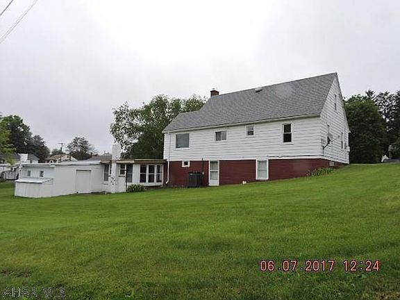 spacious cape cod with original woodwork and hardwood floors. Updated mechanics include heat pump with oil back up and central air conditioning 2011 & high efficiency electric hot water tank 2014. New 200 amp electric service and new roof over workshop and house except front section. Fireplace is non-functional as flue liner cannot be installed. Could be converted to electric or vent-less gas. Beautiful .55 acre lot with lots of room for gardening and play area for kids and pets. Oversized 2 car garage with utility garage in the rear. Breezeway is a great 3 season room 15'10x21 with built in brick oven and grill. House inspection available for review.