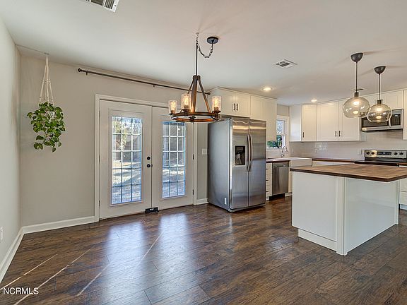 Adorable updated ranch home with an open floor plan in the desirable and HOA free neighborhood of Kings Grant. This home features kitchen island with wood top, stainless appliance package, wood countertops, split farm sink and a bonus room previously used as a home theatre complete with stadium seating, movie screen, and projector all of which convey with the sale of the home (speakers do not convey). The room could also be used as a 4th bedroom. The HVAC was replaced one year ago, the roof in 2018 and the water heater has also been updated. The rooms are spacious and the location is perfect! Fenced backyard and shed a plus. Quick access to 1-40 and the beaches. Will not last long!