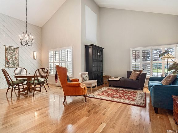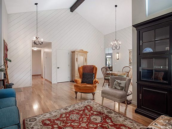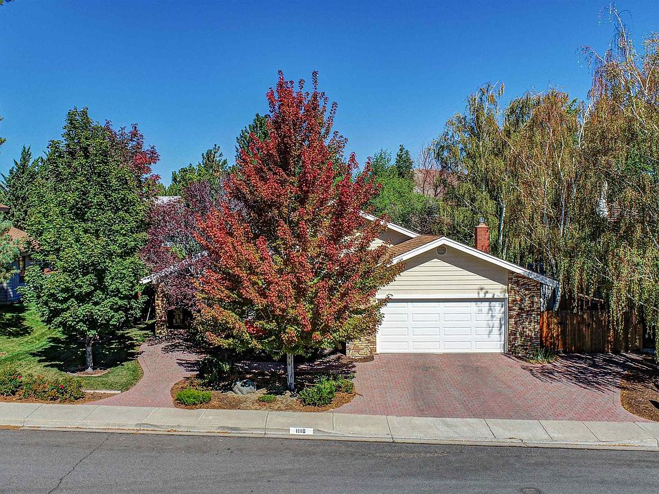 Gorgeous, desirable West Carson home with stunning curb appeal and views fronting Carriage Square Park. Arrive to a paver driveway, designer architecture and tons of upgrades you will fall in love with. It features hardwood floors throughout, vaulted ceilings, shiplap walls, exposed beam in the great room, butler's pantry with sink & a beautiful kitchen. Enjoy the newer cabinets, appliances, granite slab counters, travertine floors in bathrooms, tile walk in shower, modern lighting and more!, Backyard is like a park with a great entertaining space on the trex decking, 3 storage sheds and mature landscaping which includes a large cherry tree. Side parking for trailer or small RV is possible too. Great proximity to Reno and less than 40 minutes to Lake Tahoe. Must see to appreciate!