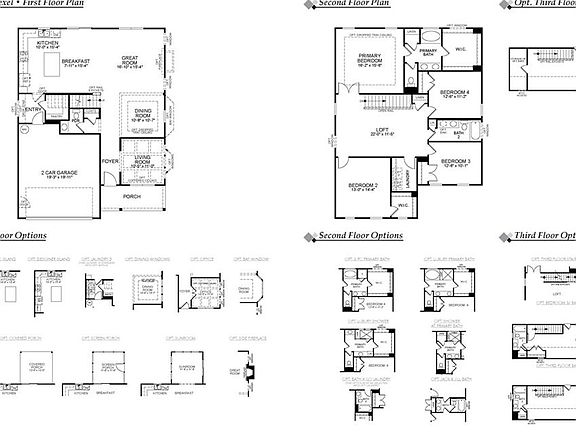 Drexel plan. 1st floor office, formal dining room w/bay window. Spacious open floor plan. Gas fireplace. Designer kitchen w/gas cooktop, walk in pantry, bright cabinetry. Primary suite w/luxury bath. Full baths tiled. Hardwood flooring throughout the 1st floor. Oak tread stairs. Oversized bedroom/bath on bonus 3rd floor. Covered back porch with patio