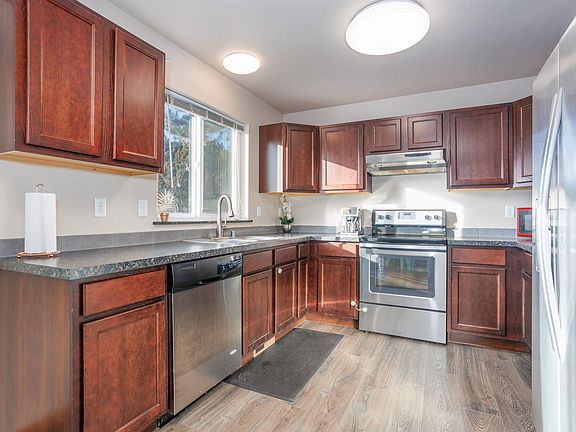 MLS# 266048 Absolutely adorable & ready for new owners! This well maintained 3 bedroom, 2 bath home comes complete with a comprehensive home inspection and a 1 year home warranty! You will find tons of value packed into this 1124 sq ft floor plan, with an inviting living area, nice kitchen with wood cabinetry & stainless steel appliances, and dining area with slider access to the patio. You will also find durable vinyl flooring that runs throughout the home, laundry room, and a 2 car garage. Outside you will enjoy a fenced backyard with a large patio area, and room to play. Whether you’re looking for your 1st home, rental investment, or just looking for less sq ft to maintain, this home is a fantastic option!