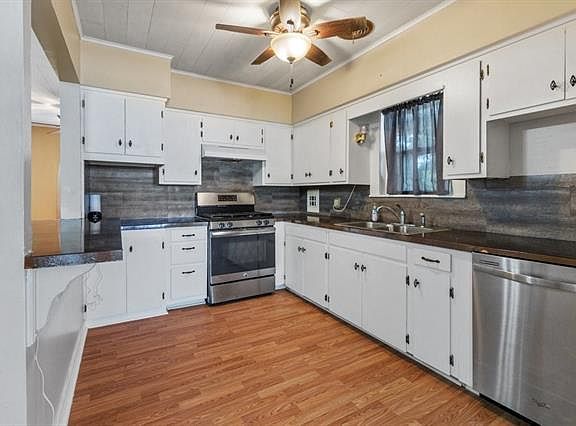 Super cute 3 bed 2 bath cottage style home in the heart of Sulphur! Move in ready! New roof, new vinyl, new windows, AND a new AC Unit. Home features updates throughout and kitchen appliances will stay with the home. Detached 2 car garage plus an extra storage shed! Back yard is fenced. Flood zone X so no flood insurance required on a mortgage!