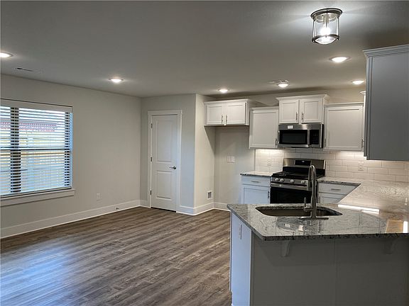 Location! Location! New, quality constructed home in Hilldale Subdivision. This lovely, single-story home is centrally located, close to top rated schools, shopping, restaurants, Beau Terre Trailhead, the Bentonville Square and Wal-Mart Headquarters. Kitchen has all stainless steel appliances including a gas range. The living room has a vaulted ceiling with a cedar beam and a gas log fireplace. Home also comes with a fully sod yard, wooden privacy fence, full gutters and blinds. RD Eligible.