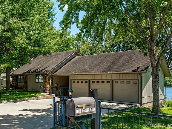 The home has been well taken care of with newer HVAC, the roof is in good condition, and the interior. The property boasts a fully finished walk-out basement with a living area, and bathroom, ideal for guests or additional family space. You could easily have two more bedrooms in the basement. The basement has a full kitchen. The home has 3 3-car garage with over 700 sq ft. and additional parking in front of the house. The home has fenced in yard with lots of mature trees. The home has a sprinkler system that uses water from the lake. The covered boat dock with a gangway makes lake access a breeze. With the waterfrontage on Grand Lake, you'll enjoy breathtaking views on your covered deck and endless recreational opportunities. It is located just minutes from all the shopping, dining, and amenities that Grove, Oklahoma has to offer. This property combines the best of