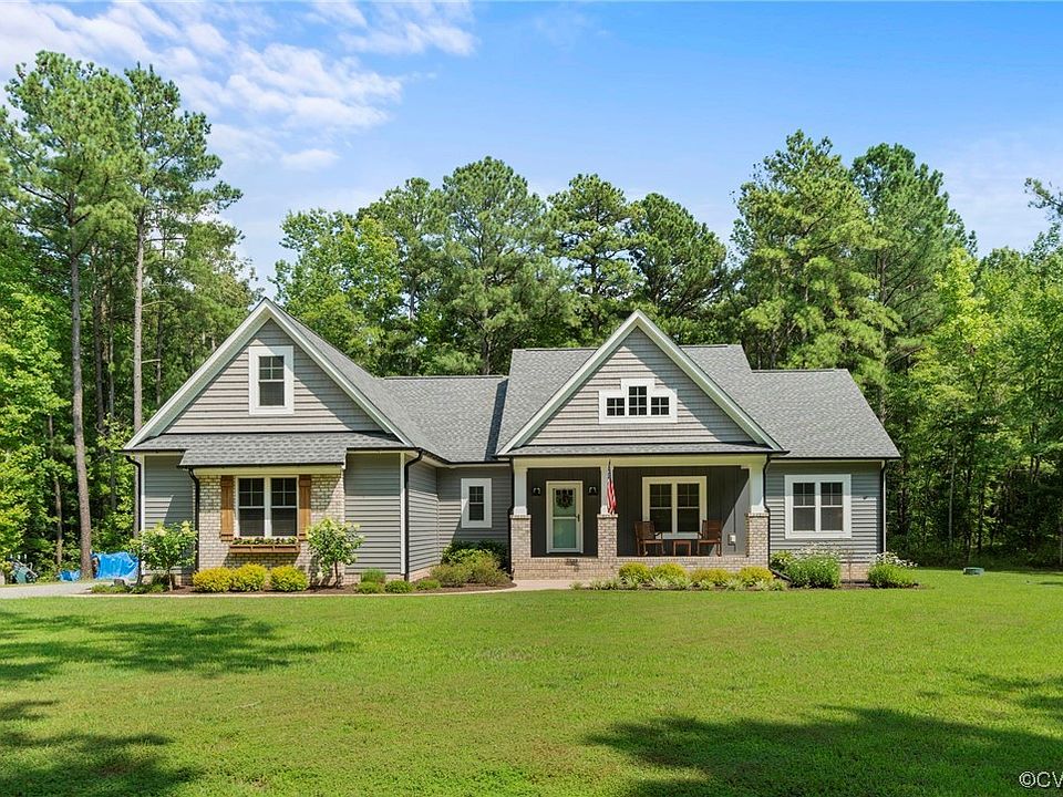Craftsman beauty on an gorgeous 7+ acre private lot located in Eastern Powhatan with 36x50 shop building with electricity. First floor living with 4th bedroom or bonus room on second level PLUS an additional finished flex room that would make a fantastic office or nursery. Open floor plan with wood burning fireplace and vaulted ceiling in great room which is open to the gorgeous kitchen with upgraded cabinetry, stainless appliances and granite counter tops. Great room, kitchen and hall features random width hand scraped hardwood floors! Large owners suite featuring a luxurious bath with soaking tub, shower, double vanity, and HIS/HER walk in closets. Come check out luxury living in the country! 8 minutes from Walmart and 12 minutes to Westchester Commons.