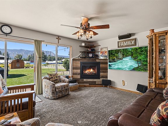 Pride of ownership shows in this single story home on over 1/2 an acre! Many custom touches throughout; including wood accent walls, knotty alder doors, live edge fireplace mantle & shelving. Open great room w/surround sound, newer carpet, propane insert, & access to the amazing back yard with Peoh Point views! Kitchen features a large eating island & hardwood cabinets. Primary Bdrm Suite hosts double closets, bath w/double sinks & 3/4 bath. 2 guest bdrms & 1 full guest bath. In addition to the 2 car attached garage is abundant outdoor parking, including 50 amp RV hookup. Front & back yard in-ground sprinklers, a heated gazebo, & firepit area. Finished outbuilding for home office, bunk house, game room? Located at the quiet end of 3rd St!