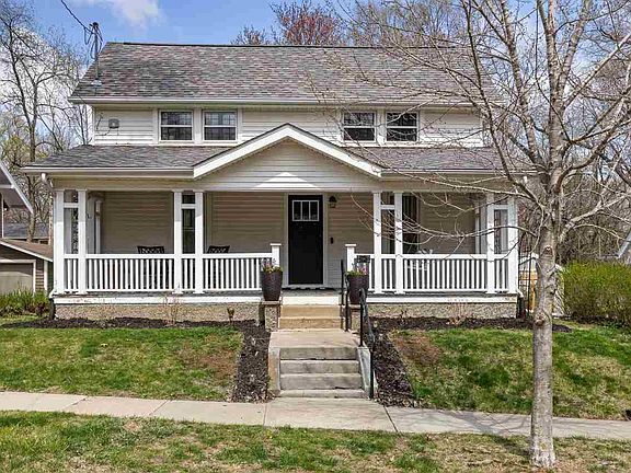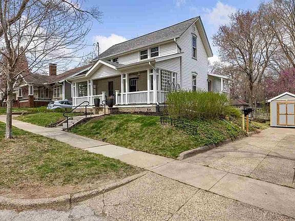Step into timeless charm with this beautifully updated 1.5-story home located just minutes from downtown. Two official bedrooms, but the open room upstairs could easily be that 3rd bedroom right next to a convenient half bath. From the moment you arrive, you’ll be greeted by a wide, welcoming front porch—complete with a classic porch swing—perfect for relaxing and enjoying the neighborhood vibe. Inside, the character of the early 1900s meets modern convenience with newly refinished yellow pine and douglas fir hardwood flooring throughout, updated lighting, and fresh paint. The reconfigured kitchen has been thoughtfully redesigned with quartz countertops, new stainless appliances, and stylish finishes. French doors lead out to a composite deck overlooking the backyard—an ideal spot for outdoor dining or unwinding. Enjoy a remodeled dining room perfect for gatherings, and a main floor bathroom featuring a tiled shower and tile flooring. Many windows have been updated to bring in abundant natural light while maintaining the home's historic charm. Close to Bus Line. A backyard shed provides convenient additional storage, rounding out the appeal of this move-in-ready gem. Don’t miss the opportunity to own a piece of history with all the right updates!