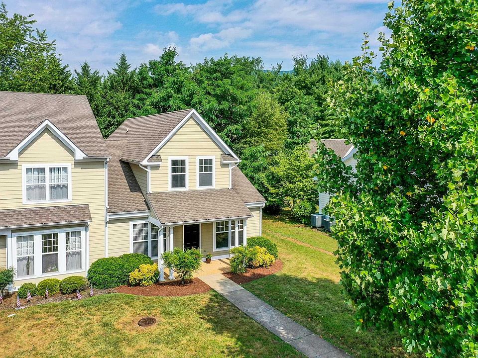 This deceptively large end-unit townhome with new HVAC in Crozet is a must-see! As you enter this light-filled home, the hardwood floors and fresh neutral paints throughout the main level welcome you in. To the right of the foyer is a large home office with glass doors for privacy.The large living room boasts a ceiling fan for comfort. Gourmet kitchen features new stainless appliances, oak cabinets, and an island with new farmhouse light fixture. Large breakfast nook opens to private back yard with patio to enjoy outdoor dining. Main level owner's suite features a walk-in closet with custom built-ins, and a private bathroom with tub/shower combo and dual sink vanity. Upstairs, you'll love the new whitewashed laminate flooring throughout! Two additional bedrooms with high ceilings, and large closets share a full hall bathroom, and the laundry is upstairs for convenient laundry day. Open space on second floor could make a unique homework zone, play space, or cozy den. Unload groceries with ease from the 2 dedicated parking spots directly in front of the home.