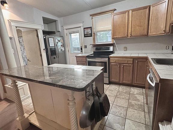 This home has so much character and unlimited potential! You will be pleasantly surprised with the open floor plan and bonus space it has to offer. When you enter, you'll find yourself in the enclosed porch with office attached, the perfect space to work from home. The high ceilings and pillars give a grand feel to the wide open living space which includes, the living room, dining room, and kitchen with a nice sized island! This is first floor living at its finest with both bedrooms and the bathroom being on the main floor. The partially finished basement has two extra rooms that could be used for workshops, hobby rooms, gaming/playrooms, the possibilities are endless! You'll never have to worry about parking with the long driveway, carport, and massive 2 car garage! Make your appointment to come and see it today! Home is being sold in AS-IS condition.