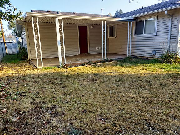 3 Br /1 B 1008 sf. 2 car garage. Quiet Private fenced back yard with covered patio. Very close to Walmart /Safeway /Winco and other shopping. Easy I-5 access. Very well insulated to help with utility cost. Refrigerator , stove and dishwasher included. Washer and dryer hookups in garage. Charming Gas fireplace in living room. Close to wonderful private neighborhood park.