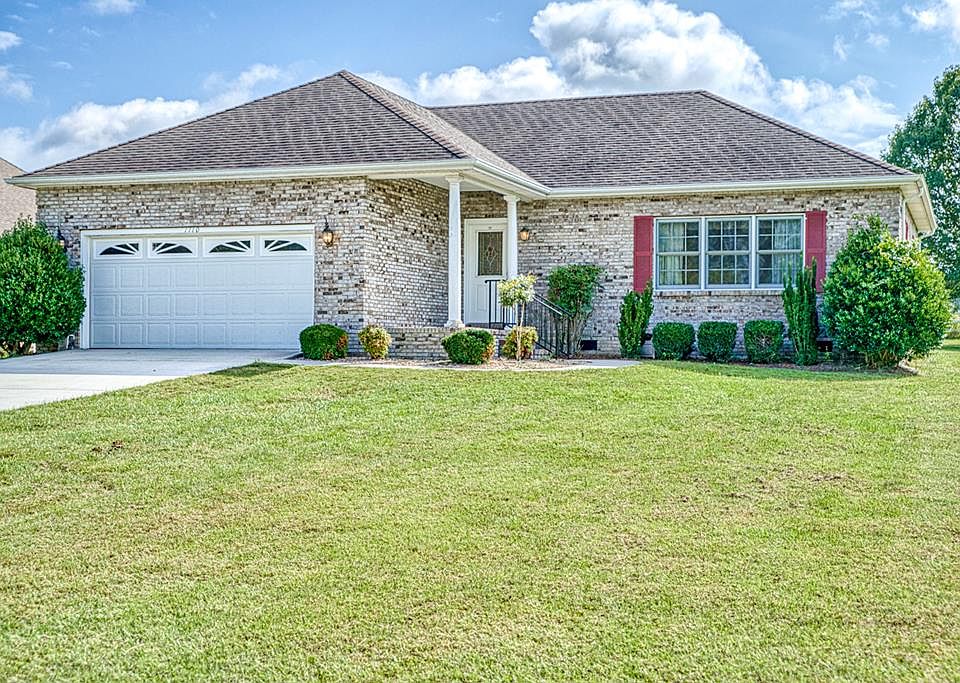 This one Level Brick Home has a great floor plan , den with fireplace, formal dining and living rooms, lots of hardwood floors open patio, two car garage and a beautiful level yard.