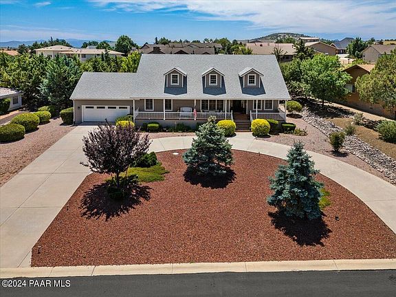 Williamson Valley Farmhouse Longview Estates near downtown & shopping. Enjoy sunsets/sunrises while sitting on your huge brick front porch w/long distance views. 2,472 livable sq. ft., 3 bedroom, 2 baths, oversized 27' deep 2 car garage on .53 acre. Live on 1 level, enter large foyer to great room, includes split floor plan, Viking gas range w/pot filler, wall oven, microwave, 12'+ long center island w/pendant lighting & farm sink, breakfast nook, walk-in pantry, laundry room with sink, office/craft room. Enjoy warm modern electric fireplace on chilly days. Plantation shutters throughout. Family room takes you back to covered porch with gas stub for BBQ, beautifully landscaped and terraced, fenced backyard, gardens & fruit trees. RV hookups water/sewer on side & power inside garage.