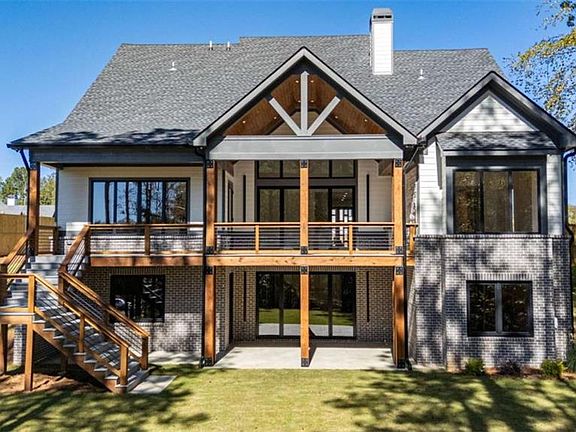 Hurry - Last home in this exclusive enclave! Exquisite Estate - Unparalleled Luxury, Prime Location.    Step into a world of refined elegance with this masterfully designed estate featuring 4 bedrooms, 2 bonus rooms/office, 4 bathrooms, a kitchen and a kitchenette upstairs, and a full unfinished basement ready for additional bedrooms, offering 4,300 sq. ft. of finished living space with an additional 2,200 sq. ft. unfinished terrace level (6,500 sq. ft. total). Ideally located just steps from Mary Alice Park, the public beach, and boat ramp, and only one mile from downtown Cumming, this residence perfectly combines serene lake living with effortless convenience. Sidewalks lead directly into Mary Alice Park, making lakeside recreation just a short stroll from your front door.    Impeccably crafted with 4-sided brick, hardboard siding, and energy-efficient European windows and doors, this home exudes timeless sophistication. The main level showcases soaring ceilings, gleaming hardwood floors, and a thoughtfully designed split-bedroom layout, with the primary suite privately tucked on one side and an additional bedroom and bathroom on the other. The owner's retreat features vaulted ceilings, oversized windows, and a spa-inspired bath with an elegant tile shower, integrated lighting, dual vanities, custom shelving, and a spacious walk-in closet that connects directly to a luxurious laundry room.    A wall of windows opens to the expansive front porch, perfect for enjoying the breeze or entertaining, with room for a TV, grill, and lounge area. Upstairs, discover 2 additional bedroom with private bathrooms, a large office, and a second kitchenette, ideal for guests or in-laws, providing comfort and privacy for everyone.    The grand unfinished basement offers endless possibilities, with rough-ins for an additional bedroom, a kitchen with island, a full bathroom, and a half bath - perfect for a home theater, gym, or recreation space. Step outside to the lower-level patio and fenced backyard, ideal for outdoor entertaining, play, or a future pool.    Additional features include a concrete driveway with a 2-car garage and high-end finishes throughout, creating a harmonious blend of luxury, function, and lifestyle in one remarkable estate. Come view today!