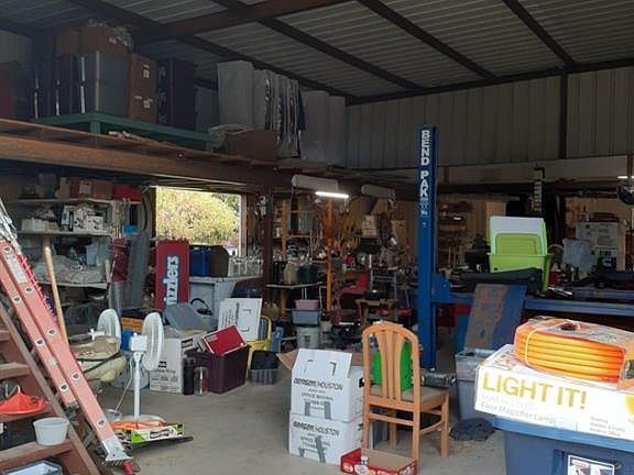SHOP -3720 Sq Ft shop divided into 3 bays - roll up doors on south and east side of building, sliding doors on east and west. Man doors connect each bay. Slab foundation, electricity and water. Security light. Loft storage in main bay. Small climate controlled room in main bay. Large fenced in area in front of shop for trailer and equipment parking. Property is perimeter fenced with entry gate. Cross fencing for live stock. Orchard is fenced off south of house - Peach, Plum, Pear, and Pecan Trees. 1276 Sq ft House is SOLD AS IS - No Repairs - Fire Damage to Kitchen area - It can be salvaged and rebuilt. Small garage - shop with electricity is just south of the house.