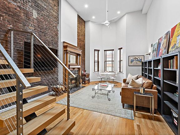Amazing uptown Hudson St. Penthouse with a private roof deck offering stunning Manhattan and Hudson River views. Perched above the city, #PH5N offers an urban retreat with 1397sq. ft. of living space, 2 bedrooms, 2 baths and a lofted flex space/3rd bedroom. This home seamlessly blends historic charm with modern convenience in a big way: Lofty 15 ft. ceilings in the living area, skylight, bay window, WBFP with period mantle, exposed brick & hardwood floors. The sleek Scavolini kitchen is a chef's dream with top end appliances: Gaggenau gas range, integrated Miele refrigerator & dishwasher. The built-in pantry runs the length of the kitchen providing incredible storage. The ultra chic main bath features a floating vanity, separate soaking tub and a glass enclosed shower. A floating metal & wood staircase leads to the flex space overlooking the living area. The private roof deck tops it all off with seating & lounge areas, water & electricity. Private storage cage located in the basement. Ideally located in the leafy uptown Hoboken neighborhood, 1110 Hudson St. is within 1 block of the waterfront, parking garages, shopping, parks, restaurants, cafes, coffee, dog parks and so much more. Well maintained professionally managed building.