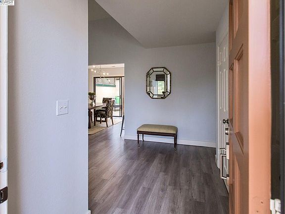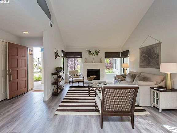 This rare (only 5 built!) & highly sought after, single level, waterfront home features panoramic views of the water from almost every room. Completely renovated, recent major upgrades include new flooring throughout, quartz counters, new lighting, new bath vanities, sinks & faucets, & fresh paint throughout. The living room has 13-ft ceilings, & the spacious master bedroom has 10-ft ceilings, 2 closets, an en-suite bathroom & a private patio. A carpeted loft/bonus room provides plenty of storage space. A sunny, private patio off of the kitchen has a redwood pergola & is perfect for casual meals or simply enjoying the weather. Steps from the lagoon (canoe included with sale!) and near the pool and hot tub, this home offers privacy, tranquility, and unobstructed views of the lagoon and greenbelt creating a resort like atmosphere. Oakland Int'l Airport is only a 10-minute drive, AC Transit OX bus to SF is a 5-minute walk, & the SF Ferry & Earhart Elementary School are just minutes away.