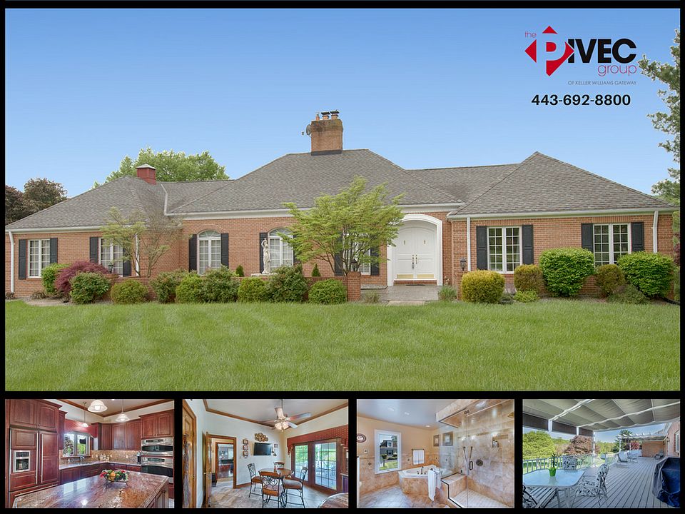 Impeccable 5 BR Rancher in the Fallston school district sitting on 2.4 acres.Gourmet kitchen w/island, granite counters & 6-burner range. Large master bedroom w/walk-in closet & attached spa-like master bath featuring soaking tub, shower & heated floors. 3 gas fireplaces and wood floors. Walk-out lower level featuring extra bedroom, rec room & wetbar. Patio & huge Trex deck with spectacular views.