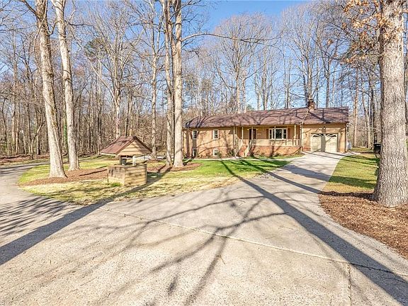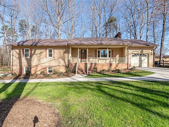 Quiet house tucked off roadway fully renovated to update interior, with hard wood floors and recent paint, counter tops, carpet and light fixtures. This house is perfect in every way. Sitting in woods and peaceful and private. 3 BR and 3 Full baths and a full basement with limitless possibilities. 3 car garages, and back deck the length of the house covered screen porch also. TO many perks to list, this house is move in ready, and wont last long. Convenient to town, and highways to go either direction Winston or Greensboro