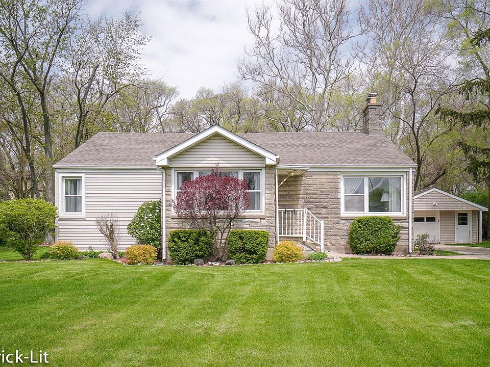 Beautiful ranch home, now available in Schererville!! This must-see home is nestled on a serene - oversized lot that boasts mature trees, an enclosed porch, patio, and a detached 1.5 car garage. Step inside to the freshly painted interior which has been accented with neutral decor, Colonial trim, white 6-panel doors, and brand-new flooring. Hosted in the main living area is a cozy sunroom, a dinette with built-in bookshelves, a sun-filled living room with a stone fireplace, and a well-appointed kitchen with custom 42'' cabinets. To complete the home are 3 bedrooms, one-full bathroom, and a full-unfinished basement. Perfectly set only steps from shopping and dining; this locale is minutes from 41, I94 and so much more! Come view this immaculate home before its gone! Please note this is an estate sale, sold As Is.