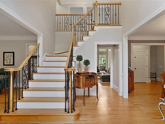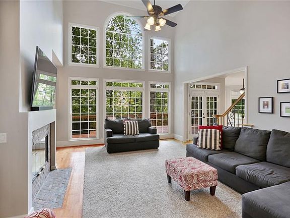 Welcome home to this Windward beauty! Nestled in a quiet cul de sac yet part of the thriving, active lake community of Windward. This community has every recreational amenity a family could want. The wide open, light filled rooms are both grand in size and warm in feel. Space and design make this home unique. The custom built shelving in the soaring fireside great room add a fabulous architectural element. The open yet defined floor plan provides space for both family and friends when entertaining. A screened porch off the updated kitchen leads to the oversized deck,