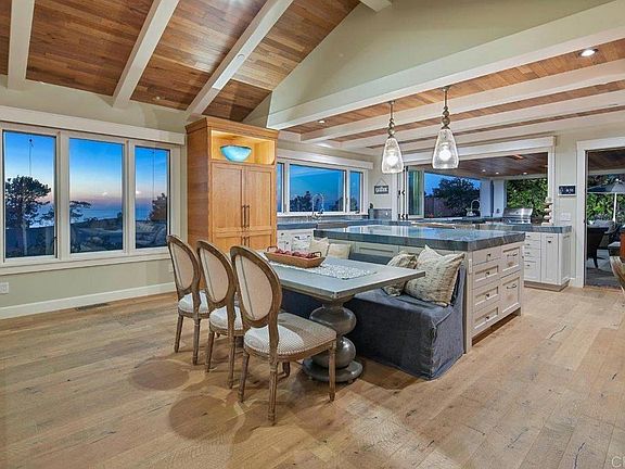 Entering this home, you are captivated by the panoramic ocean views & stunning level of design detail throughout the house. From copper gutters to slate roof, no expense was spared. Privately tucked into the heart of the Del Mar Village on a conveniently located corner lot, this spectacular home lives like a single story with an elevator serving every floor. Its four bedrooms all enjoy full baths ensuite. Two more half baths complete the comfortable living design by popular local architects Bokal & Sneed. La Cantina windows & doors bring in ocean breezes & an indoor-outdoor lifestyle. Kitchens, both inside & outdoors, boast gorgeous Azul Macaubas Quartzite countertops from Brazil & top of the line stainless steel appliances, including a Miele built in coffee machine, refrigeration doors, multiple dishwashers & more. The outdoor kitchen includes Lynx BBQ & Perlick outdoor refrigerator plus motorized drop-down TV in patio. There are multiple hearths with hand-picked stone & shells to relax by or gather around. The master suite level has a large view deck for enjoying the sweeping ocean view and fun entertaining. The spa-like master bath includes steam shower, gorgeous soaking tub, Toto Washlet automated toilet & large walk-in closet. Take the elevator down to a beautiful wine cellar with barrel stave wall, laundry room and a gorgeous family room with entertainment center that includes multiple Subzero refrigerator drawers, microwave, dishwasher, ice machine plus plentiful storage & custom cabinetry throughout the home. The garage accommodates three cars with a lift, providing highly sought-after parking along the coast. At the end of a busy day, enjoy spectacular ocean views & breezes, luxurious living & a very short walk to gourmet restaurants, shops, many options to enjoy live music, fun events by the Del Mar Village Association & the Del Mar beach!