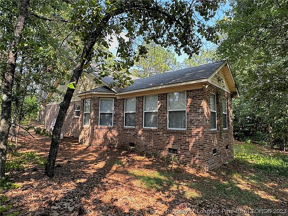 Welcome to this 3-bedroom 2 full bathroom home tucked away on a 1-acre wooded lot (lots of mature trees & shade). Partially covered front porch, ceiling fans in almost every room, Carolina Room, Living Room with Fireplace, Master has a trey ceiling, his & her walk-in closets, separate shower, garden tub, separate water closet, dual vanities with extra storage, finished bonus room above the garage, two car garage, RV parking pad with connections, quiet area, No HOA. New Roof 2021, New Dishwasher 2023, New Garage Door Opener 2022 (wi-fi compatible) & outside entry keypad. HVAC serviced 2022. New steps with rails - front porch and back door. One year home warranty. Close to Fort Bragg, restaurants, and shopping.