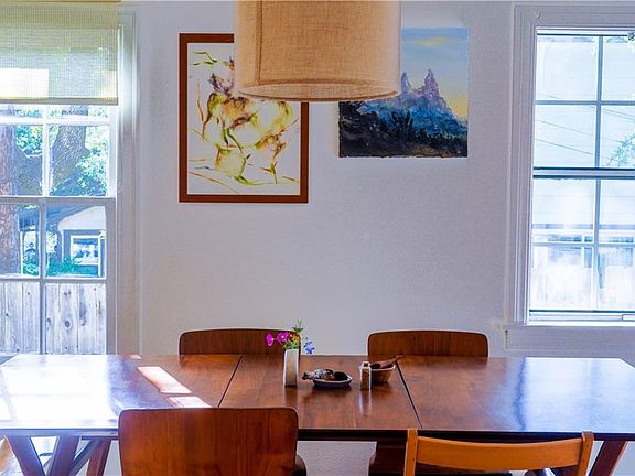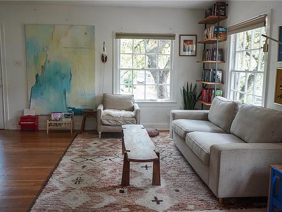 Sweet Travis Heights bungalow with wood floors, recently updated kitchen with great vintage stove. 3 bedrooms, 2 baths. Back bedroom has its own bath and could easily double as an office. Tons of possibilities for backyard studio. One car garage and one car carport. Large back patio area and big shady back yard. Walk to Stacy park & pool, as well as shops and entertainment on SOCO. House sits up and back from street and is a great place to watch the world go by. Charm and location make this a must see!