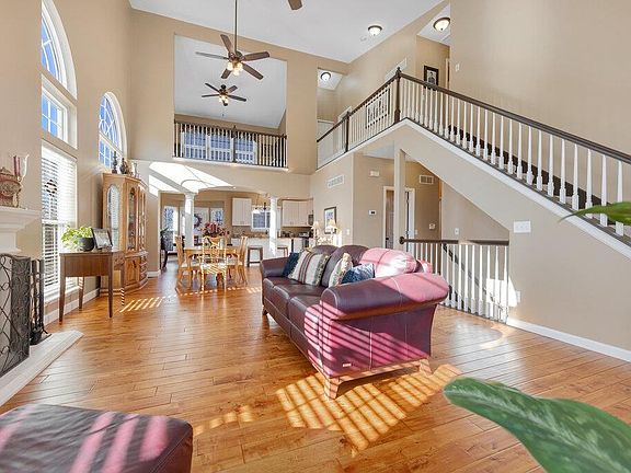 Tucked away on a quiet cul-de-sac, you will find this stunning 1.5 story home with newer windows, newer flooring throughout, soaring ceilings, updated baths, and kitchen! The great room boasts hardwood floors, a WB fireplace and an abundance of natural light. The gourmet kitchen is open and features a large island with granite countertops, updated appliances, and a walk-in pantry. The main floor primary bedroom enjoys a huge walk-in closet and newly remodeled bath with a stand-alone tub overlooking the private back yard. There are 3 large bedrooms upstairs that each have walk-in closets. The loft is the ideal space to relax! The finished walk-out lower level is a great getaway and offers a full bath and ample storage. The newer 2-tiered deck has a custom spiral staircase. Custom stone steps! The 3-car garage has overhead storage. Oversized driveway!Newer HVAC (2017), Roof (2016), Appliances (2016), Windows/Doors (2021), Flooring (2019), Baths (2018). This home will surely impress!