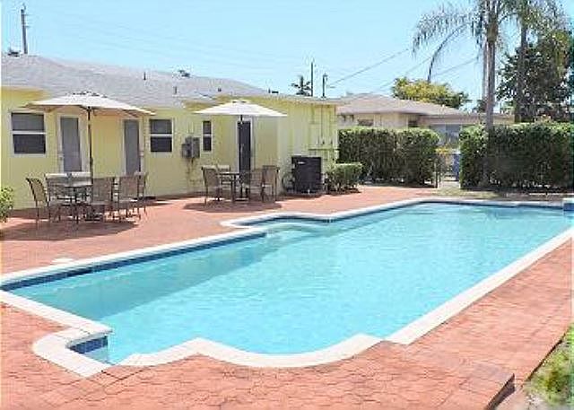 Large duplex,each unit 2 bed 2 bath with laundry room. Over sized pool and room to build additional duplex, investors dream, perfect vacation rental income. HURRY WON'T LAST.