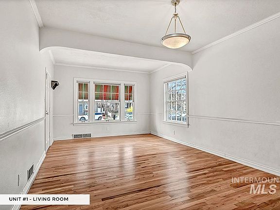 Incredible investment opportunity in the heart of Boise's beloved North End neighborhood. Built in 1915 as a grand Craftsman residence, the property underwent a conversion into a triplex while retaining the charm & historic architectural contribution to the locale. With a walkscore of 86 & bikescore of 82, this address can't be beat for urban living & access to popular North End attractions including Hyde Park, Camel's Back Park, foothill trails, the Boise Co-Op all found within blocks of this prime location. The building is distinguished by two units accessed through a gorgeous sun porch entry on the main level & a sweet little garden level unit accessed on the north side of the property. Perfect as a plug and play rental property to add to a portfolio or an owner-occupant to reside in one unit and offset the mortgage with rental income from the other two units. The main level units are rich with historic character, having arched entryways, wood floors, multi-light wood windows, & original cabinetry & doors.
