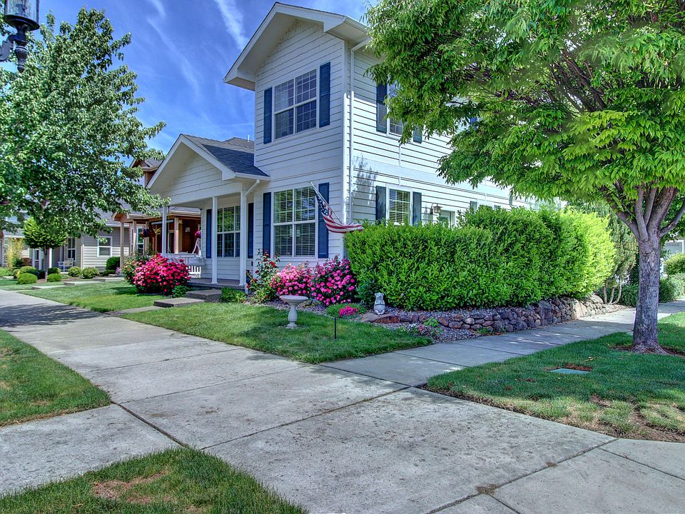 This spacious ''All American House'' sits on a corner lot in the desirable Twin Creeks neighborhood, just blocks from parks and open fields. Proudly built using American-made materials, this home is the first of its kind in Southern Oregon and welcomes you with vaulted ceilings and a spacious living room. The open floorplan leads seamlessly into the kitchen, which provides ample counter and cabinet space, a large pantry, new dishwasher, new sink, and an eating area warmed by natural light. On the first floor, you'll also find a half bath, laundry room with a folding table and built-in hampers, a new hot water heater, a heated/cooled garage, and a private master suite, beautifully designed and ready for you to unwind. Head upstairs to the family room flanked by three large bedrooms and an additional full bathroom. It's the perfect place for movie nights or sleepovers! Call now to schedule your personal tour of this American-made, meticulously cared-for home.