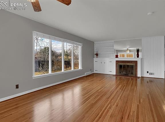 Mid century modern design in established, sought after Divine Redeemer neighborhood. Main level features hardwood floors, living/dining room w/huge windows, built in hutch & brick hearth/gas log fireplace, Pikes Peak view through the trees. Nice back yard w/privacy fencing, alley access & storage shed. Walk out to private covered stamped concrete patio for easy outdoor living. Brand new roof w/ warranty. All new interior paint, front door, light fixtures & carpet. Newer vinyl windows. Well insulated=low utility bills. Spacious room sizes. Main level bedroom near front door would make nice studio or office featuring a built in desk area. Large family room in basement & 2nd gas fireplace. The rear fence was moved into the back yard to provide trailer or camper parking along the alley with a 30 amp RV hook up. The rear fence could extended to make the back yard large if desired. Same owners since 1964! Pride of ownership really shows! Bring your imagination and call this your new home!