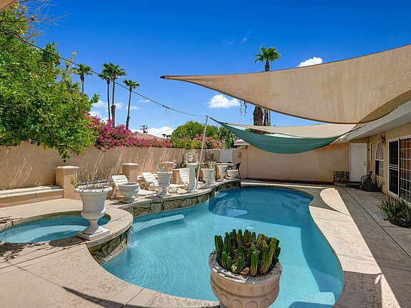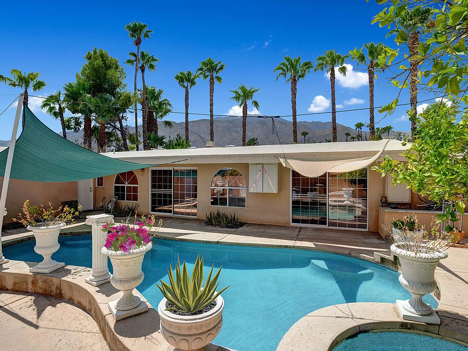 Welcome to 1110 May Drive! Built in 1955 this Mid-Century home is located on a quiet cul-de-sac in the highly sought-after Movie Colony Neighborhood in Palm Springs. After entering the private front gate, you are met with a spacious yard with excellent fruit trees and incredible mountain views. This upgraded 3-bedroom 2-bathroom home contains new kitchen cabinets, new windows and exquisite tile floors. The private backyard is an oasis with an excellent pebble tec pool and spa. Just minutes away from downtown Palm Springs shops and restaurants. This home is perfect for the coveted Palm Springs lifestyle.