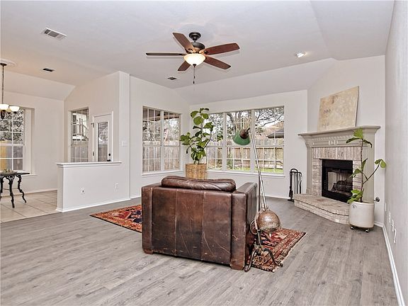 One Story MOVE IN READY family home with no carpet--NEW hand-scraped Pergo laminate flooring throughout, freshly painted interior, new range and microwave, energy efficient lighting, and new hardware on all doors. Soaring high ceilings in all rooms, tiled kitchen with center island and open to the family room and breakfast room, covered patio in back, lots of windows for plenty of natural light!!