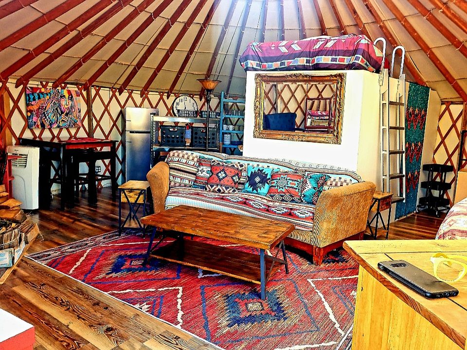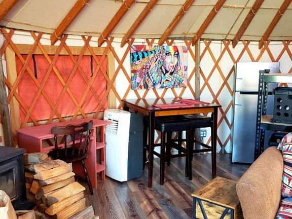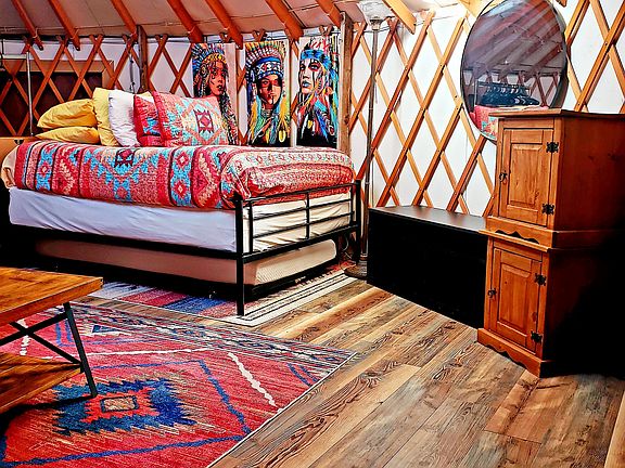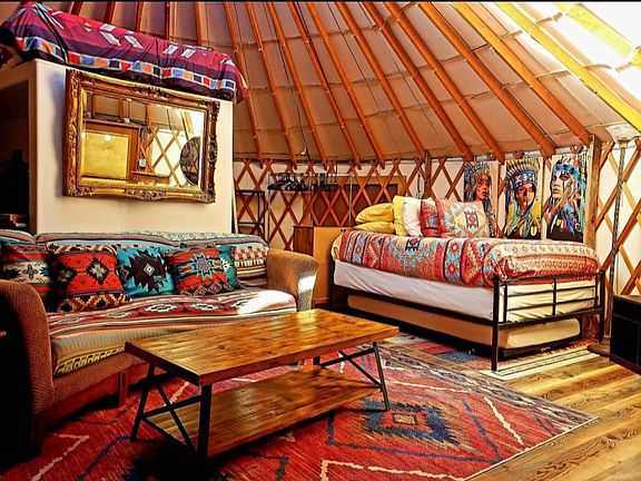 Yurt- living Off grid- Cozy Yurt Hideaway w/ Southwest Soul and a Bohemian twist. This lovely eco-space with room for up to 5 kindred spirits is a TAOS vibe experience. Come surround yourself by the mountains. **Features: Sleeps 5 comfortably Expansive private yard Off-grid living (wood stove, water-cistern, and bio-waste gas cook-top ) ** Message w/questions- $1000 (1st) $1000 (deposit) upon move in. - 6month lease or more required -Credit Report -Proof of income -Back ground check - Valid ID Available now.