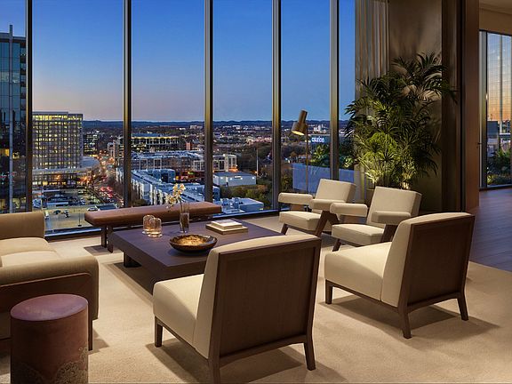 Welcome to Residence 1403 The Residences at THE NASHVILLE EDITION — a sophisticated thee-bedroom, three-and-a-half-bathroom residence with 2,010 SF of refined living space in Nashville’s premier high-rise and 1,717 SF of outdoor terrace space. Located on the 14th floor with stunning north-facing views, this home features soaring 10'+ ceilings, wide-plank white oak floors, and a chef’s kitchen outfitted with white oak cabinetry, Oroluce quartzite slab countertops and backsplash, Miele appliance suite, and an under-counter Azure wine fridge. The serene primary suite offers a spa-like bathroom with Porcelanosa tile, stormy gray travertine vanity, brushed bronze Hansgrohe fixtures, and Duravit toilet. Residents enjoy world-class amenities including a 50-ft pool with cabanas, wraparound terrace, private fitness center, golf/sport simulator, game & screening room, and 24-hour concierge and security services. Situated in The Gulch, you're steps from Whole Foods, QNTM gym, Turnip Truck, and the city’s best dining, retail, and entertainment.
