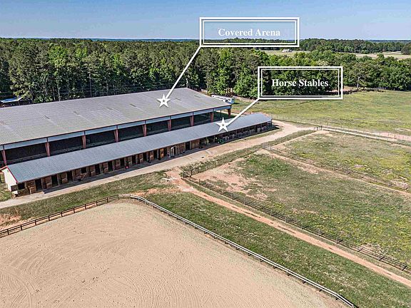 SPECTACULAR property for sale that would fill any dream farm or business you desire. Property is currently set up as a Hunter-Jumper Show & Training Facility; Idlewild at Lake Oconee. Fully equipped the property features: 3 Arenas: The largest Steel framed showing arena you will find in the area APX 1 acre under roof, Judges building, Kitchen/Cafeteria & guest bathrooms. There are 2 outdoor riding arenas, 25 stall barn & stables (can be converted to 36 smaller stalls), a trainers office, tack room & wash rack. There are 26.98 acres with pasture and cross fencing. Just under 900 Ft of Road frontage and ample room for parking-you will have no problem hosting here! There is a 2005 3/2 modular home in the back of the property for private a residence. Great location - only 6 miles from I-20 and 45 minutes from the International Horse Park!