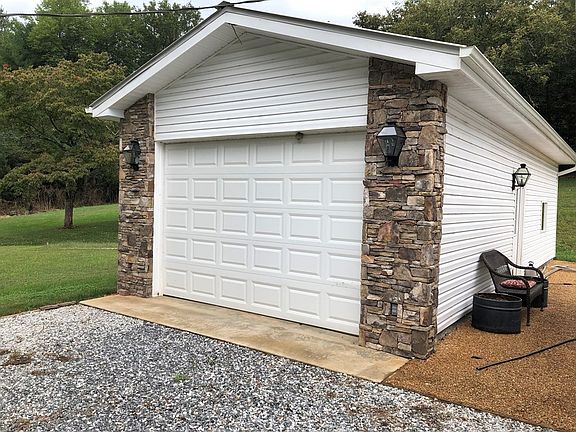 Beautiful home inside and outside. Stack stone accents with brick and vinyl give this home real curb appeal. Single car detached garage perfect for a man cave and parking. Spring feed stream boarders the property. This home was completely refurbished inside and out including the wiring and heat an air components10 years ago. No expense was sparred. Close to town and level yard great for kids. Metal roof. Hardwoods and carpet. Both baths have travertine tile enclosed showers with glass doors. Being sold as is.