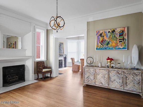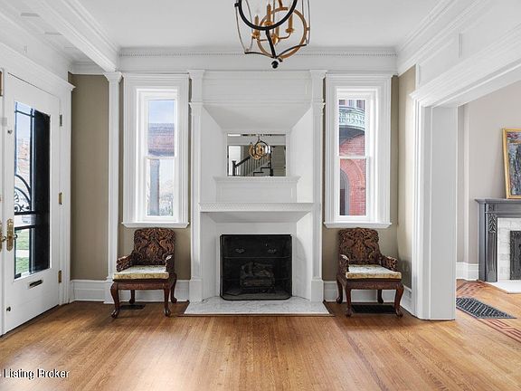 This wonderful Victorian Era Gothic Revival with Chateauesque architectural influences offers almost 5000 Sq. Ft. of stunningly renovated living space with 6 generous bedrooms along with 3 full & 1 half baths. Enter the home through double doors off the covered front porch into the sizable entry foyer with original fireplace mantle which boasts the incredible continuous, square 3-story staircase. The formal parlor is to the right with a vintage fireplace mantle & bay window overlooking millionaire's row in Historic Old Louisville. Behind the foyer is the elegant formal dining room with another fireplace mantle and original corner built-in china hutches. Both these formal rooms have original oak flooring with detailed inlaid borders while the rest of the home offers new oak flooring. Behind the main staircase leading back to the kitchen is the original rear staircase. The kitchen is adorned with white cabinetry offering soft close doors, custom cabinet pulls, a center island with farm sink, granite countertops, chevron mosaic marble backsplash, premium stainless appliances, a trey ceiling, pendant & can lighting along with vintage built-in cabinetry. Behind the kitchen and overlooking the rear privacy fenced yard is the rear sunroom with tile floors. On the 2nd floor you will find the luxurious primary suite with ensuite bath, walk-in closet, sitting room with sink, coffee station and mini-fridge which opens to the spa styled bath with marble floors, marble double vanity, an elongated slipper tub, a large glass enclosed walk-in shower and a water closet w/commode. There are 2 additional bedrooms and another well-appointed bath with tub/shower on this level, a large laundry room with under counter washer/dryer, built-in cabinetry and a large utility sink. Up to the spacious 3rd floor (offering over 1400 Sq. Ft.) where you will find 3 additional bedrooms, a huge media room open to a mini-kitchen for entertaining needs and another full bath with marble shower. The home was completely renovated in 2020 and has updated plumbing, electrical, reconditioned windows. There is also a full unfinished basement with interior access for all your storage and workshop need, 3 separate HVAC systems to ensure comfort on all 3 floors & off-street parking with automatic entry gate off the rear alley. The average LG&E runs around $300 per month and the water/sewer averages around $125 per month.