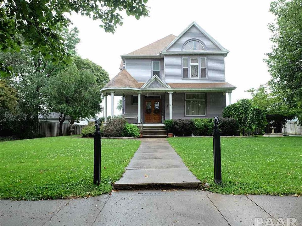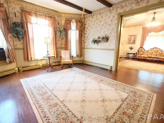 Come take a look inside this beautifully maintained Victorian home in the heart of Pekin! This home has much to offer, including beautiful hardwood floors in the living room. Fully updated kitchen w/ butlers pantry. 4 bedrooms on the upper level and spacious walk-in closet in the master bedroom. Large lot with 2 stall detached garage and circle drive that is great for entertaining. Beautiful landscaping throughout and much more. Come see this amazing home today!