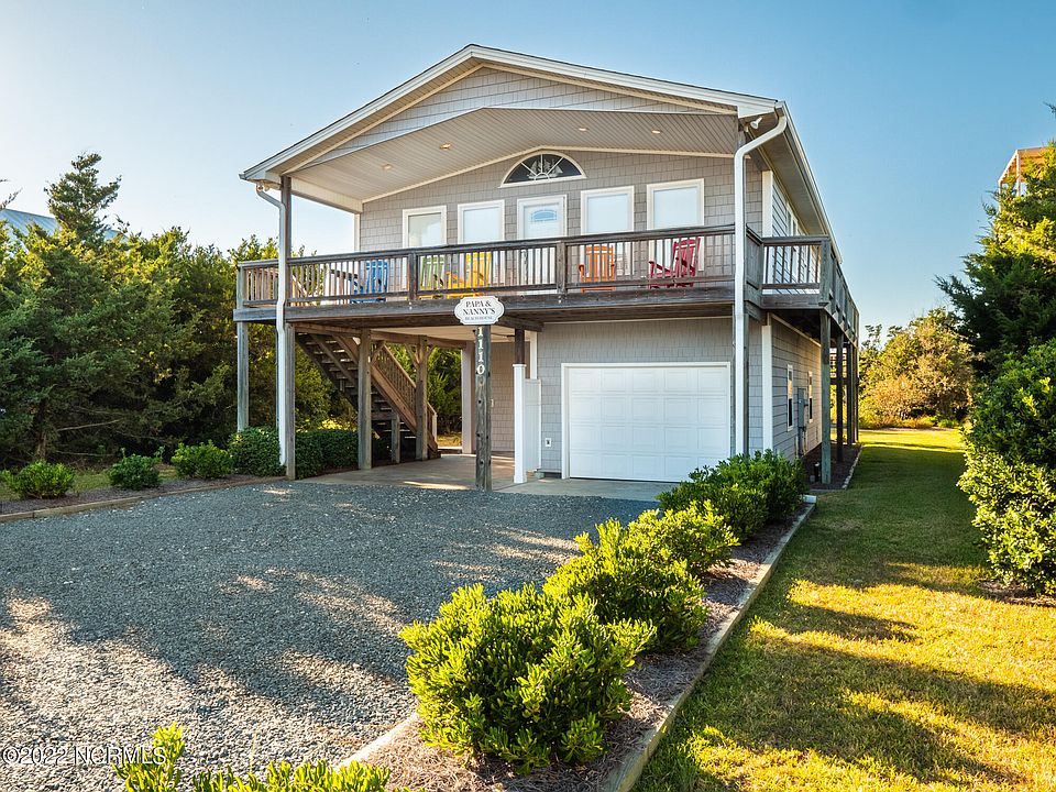 Perfectly maintained home on the ''South End'' in Topsail Beach. Add in a large, well landscaped lot, convenient beach and sound accesses, nice views, garage, elevator AND a golf cart. What else do you need but time to enjoy! This property has usable space on the ground floor with a half bath plus washer and dryer. Abundant storage for all your beach and water toys. Vaulted ceilings, hardwood floors and plenty of deck space to relax with friends and family. This will convey fully furnished and ready to enjoy. While not a rental, this could produce revenues seasonally. Living is all on one level making it easy for everyone. Come take a look as this compelling offering.