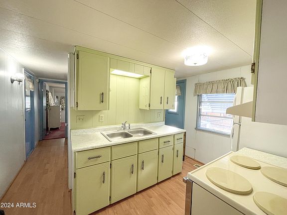 This cute retro mobile home is located in 55+ San Pedro RV Resort just off Hwy 80. Split floor plan, indoor laundry, and a unique layout should be a few reasons to add it t your list! Fresh exterior paint, recently recoated roof, and can convey furnished with the necessities in the photos. Outdoors you'll find private parking, a screened in patio, work shed and mature landscaping. The resort has a lot to offer including two pools, a spa, planned events, a clubhouse, library, pickle ball and offers a safe, quiet place to walk the property. *This sale if for mobile home only on a leased lot. Buyers must complete a background check/application with the resort. Resort fees cover use of amenities, trash and sewer.