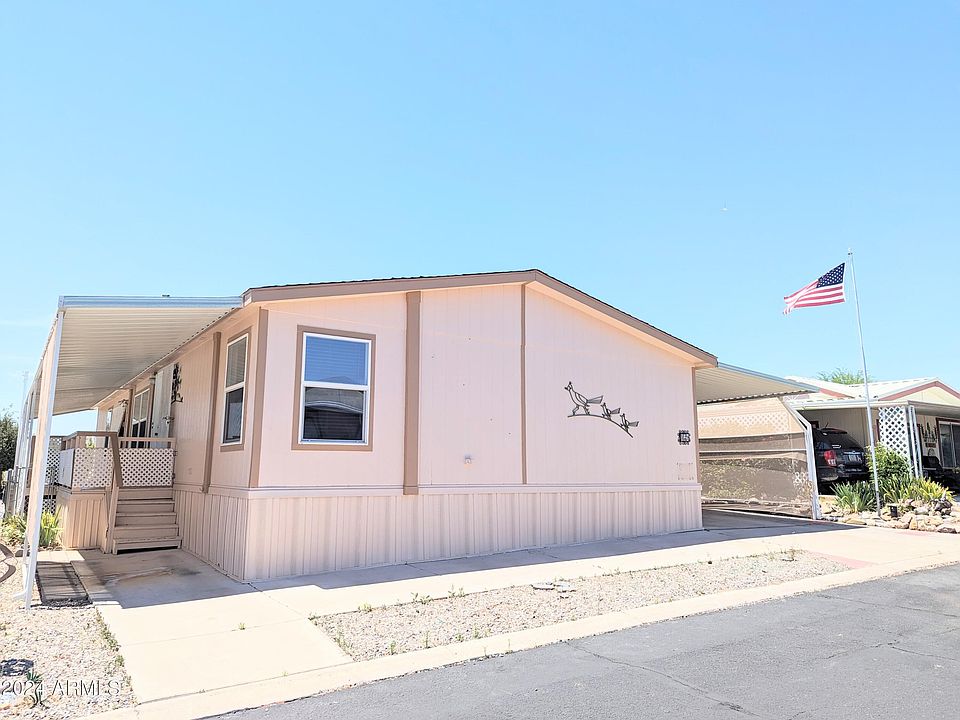This beautifully maintained double wide mobile home is ready to move into! With a 3 bedroom/2 bath split floor plan, there is plenty of privacy for guests or roommates. Plenty of room outside under the back of the carport to set up a cozy dining/lounging area, a decent sized front porch for sipping coffee and enjoying the warmth of the Arizona sun, and even a small grassy area in the back for your four legged family members. As an added bonus to this already fantastic home, it sits inside of San Pedro RV Resort. San Pedro RV Resort is a 55+ community with 2 pools, 2 spas, pickleball, dog park, trails, craft room, planned activities, and more! Minutes from I-10 and I-90 to access Sierra Vista or Tucson... and just down the road on 80 from historic Tombstone!