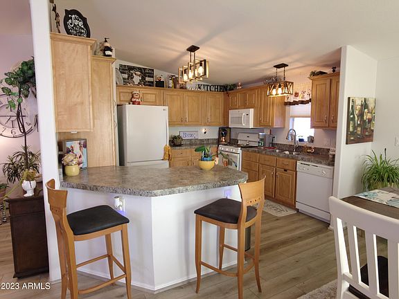 This immaculate, well-loved home is ready for next lucky homeowner. New flooring and decking at front and back decks. Three bedroom, two baths, laundry room with washer & dryer and cabinets. Sale is for home only on leased lot. Buyer will need to apply and be accepted by Park also. Park amenities include laundry facilities, pool, activity room and more. Conveniently located near Hwy 80 for quick and easy commutes to Benson for shopping, medical, restaurants, etc. and on the way to Tombstone and Bisbee.