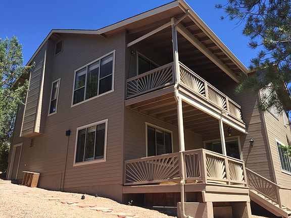 Spacious custom home on cul-de-sac and backing Tonto Apache private land. This 2598 sf with 3BDRM/3BA/3CG on 0.35AC lot, also offers beautiful views. Beautiful wood floors lead into living room with vaulted ceiling, gas fireplace and easy flow into dining area. Views of the Mogollon Rim from the dining area and large covered deck looking out to heavily treed back yard. Kitchen is large with refrigerator, extra cabinets, built-in office nook and breakfast bar. Master bedroom on main level with a large walk-in closet, shower and double vanity. Second bedroom is also on main level as is the laundry room with washer & dryer and guest bathroom. Lower level provides a massive family room with gas fireplace, exit onto deck with sunk-in Jacuzzi. Third bedroom and full bathroom off family room.