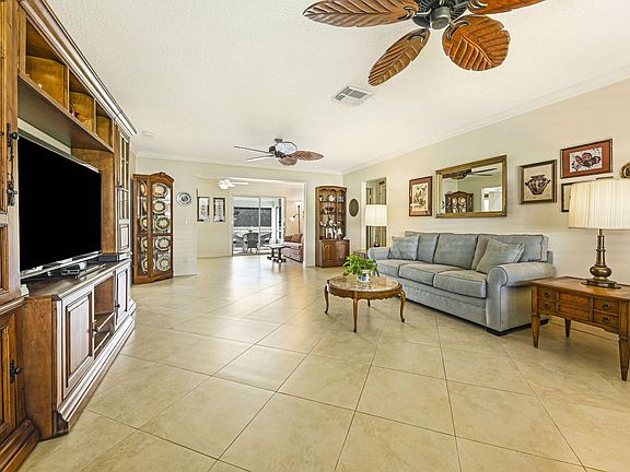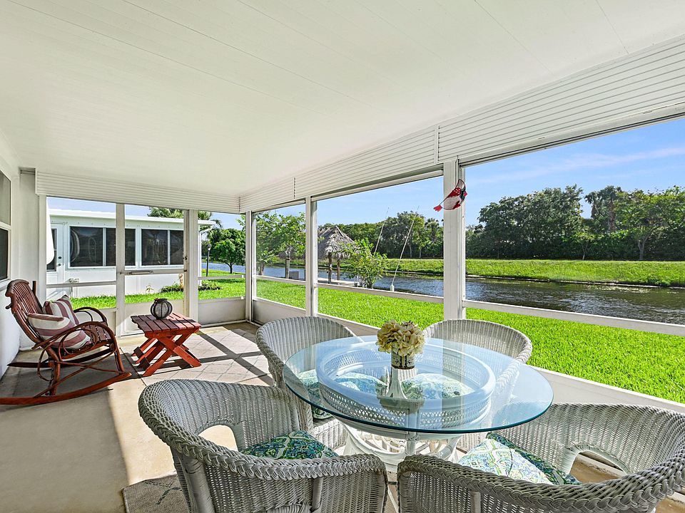 Waterfront Delight...Updated 2br/2ba with both full Fla room and screened porch. Roof & A/C replaced 2016. Impact windows front and back only, Screen porch has roll-ups and accordion shutter. 20'' neutral porcelein tile thru-out. Kitchen cabinetry replaced, recessed lighting, extra cabinetry in kitchen and Fla. room. Hurricane rated front door and garage door. Both baths vanities and electric fixtures replaced. Shower in Master bath retiled. Electric Service Panel & wiring all replaced. Decorative drive. Beautiful water views and boating to major lakes.. Close to shopping, restaurants and minutes to ocean beaches. Paid up recreation lease in full. Free 18Hole golf Par 3. Three heated pools, 3 clubhouses, fitness center. A Must see.Bedroom pictures virtually staged with furniture.