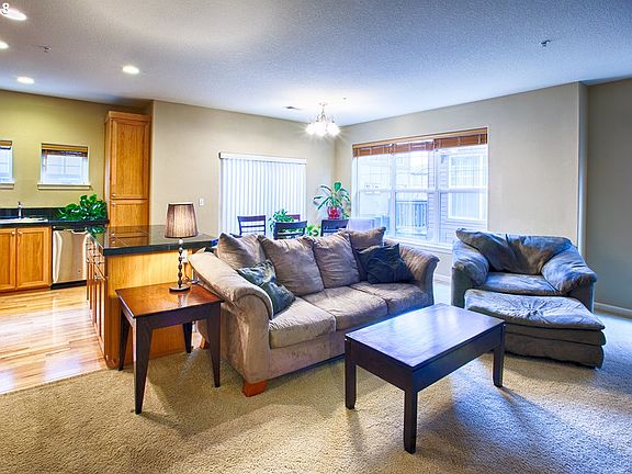 Stunning condo with completely open floor plan on lower level. Gorgeous wood floors in kitchen and dining room. Half bath on lower level. Kitchen has island with tile countertops and stainless steel appliances. Laundry is conveniently located on upper level with all bedrooms and 2 full baths. Private garage. Located near a lot of shopping including Whole Foods. Also located near Tualatin Hills Nature Park. Buyer to verify all info.